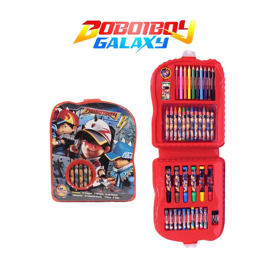 Boboiboy frostfire supra glacier 42pcs art set / set seni / warna with crayons markers pastels colour pencils.